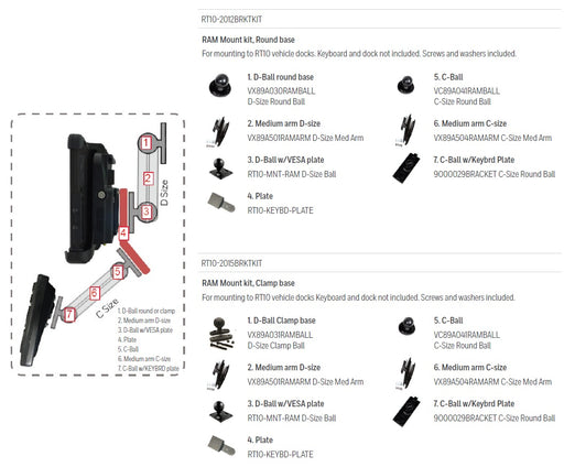 HoneywellRam kit for mounting to RT10 vehicle docks. Keyboard and dock not included. Screws and washers included. 1. D-Ball round 3.68 base VX89A030RAMBALL...
