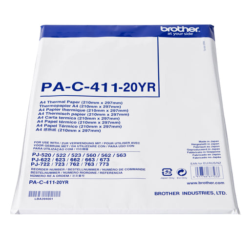 BrotherMobile Thermal Paper, (PA-C-411-20YR) A4 thermal paper sheets (100 sheets), 75gsm, 20 years