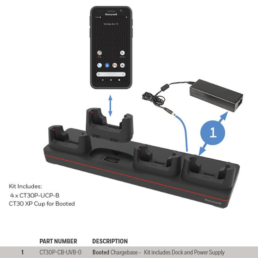 HoneywellCT30 XP booted 4 bay charger. Kit includes 4 bay charger, power supply, must order power cord separately. For recharging up to 4 computers with pro...