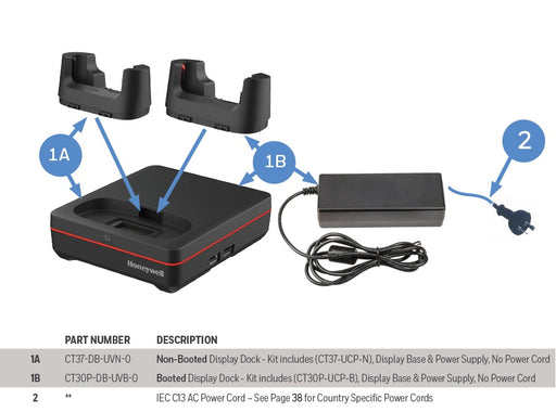 HoneywellCT30 XP / CT37 (w/ standard battery) non-booted homebase. Kit includes homebase, power supply, must order power cord Separately. For recharging one...