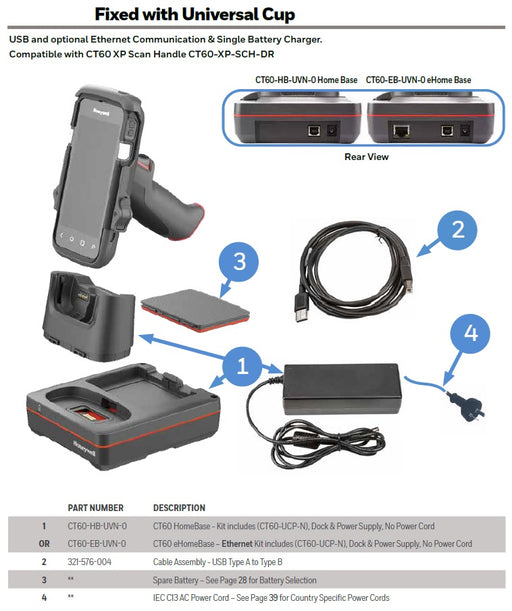 HoneywellCT60 EHOMEBASE 1 BAY, NO POWER CORD // CT60 eHomeBase – Ethernet Kit includes (CT60-UCP-N), Dock & Power Supply, No Power Cord, Requires CAIEC....