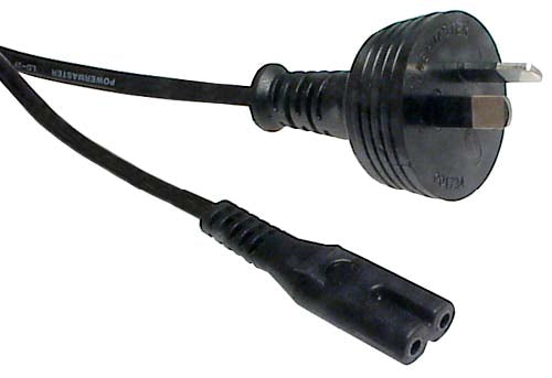 Generic1.8 metres, 2.5Amp power cable, Aus/NZ 3 pin male plug to IEC C5 clover leaf female socket. Amp Rating: 2.5A. Cable: 0.75mm sqr Aus/NZ 3 Pin Plug...